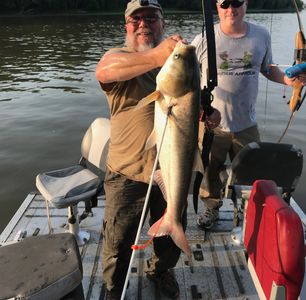 I use compound bows with AMS retrievers. They are set up to snap shoot as well as hold back and wait for the perfect shot. I also have some recurve bows for those that like it old school. I have both adult and child bowfishing rigs set up for right and left handers. I also have a spear I call Poseidon if you want to impale some asian carp. I carry dip nets for the kids. If they are to young to operate the bows they will have just as much fun scooping these slimy flying fish out of the air with the nets. Adults love the dip nets too.